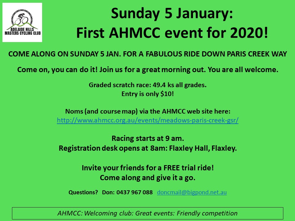 February 22nd, 23rd February will see AHMCC host the 8th running of the Tour Of Goolwa, once again sponsored by ADX Depot.